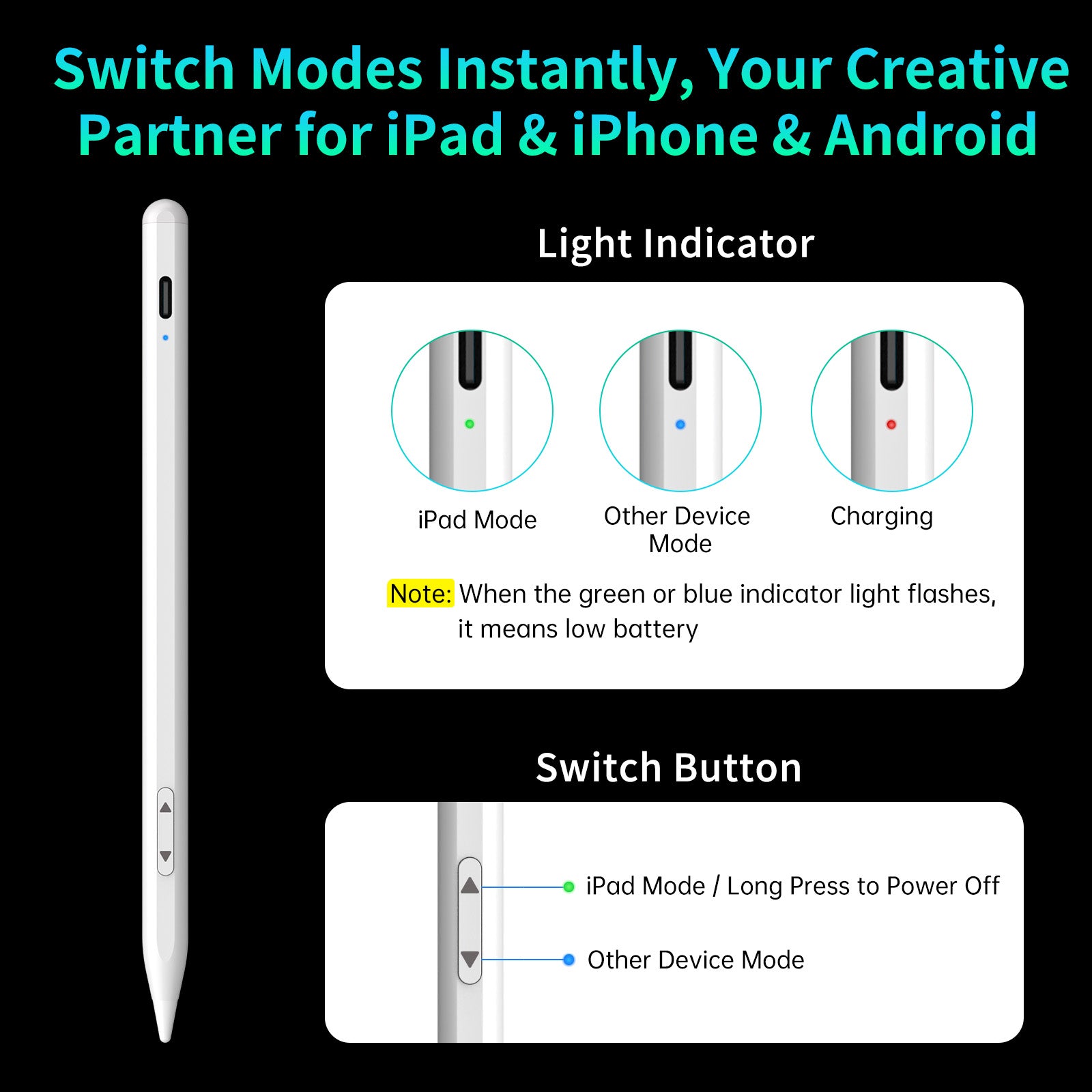 <p>In this mode, the blue LED lights up. The iphone stylus pen is compatible with most touch screen devices: iPhone, iWatch, Samsung Galaxy, Xiaomi, Huawei, Google, Motorola, and Lenovo. Whether you're taking notes, drawing, or typing, this phone pen is
